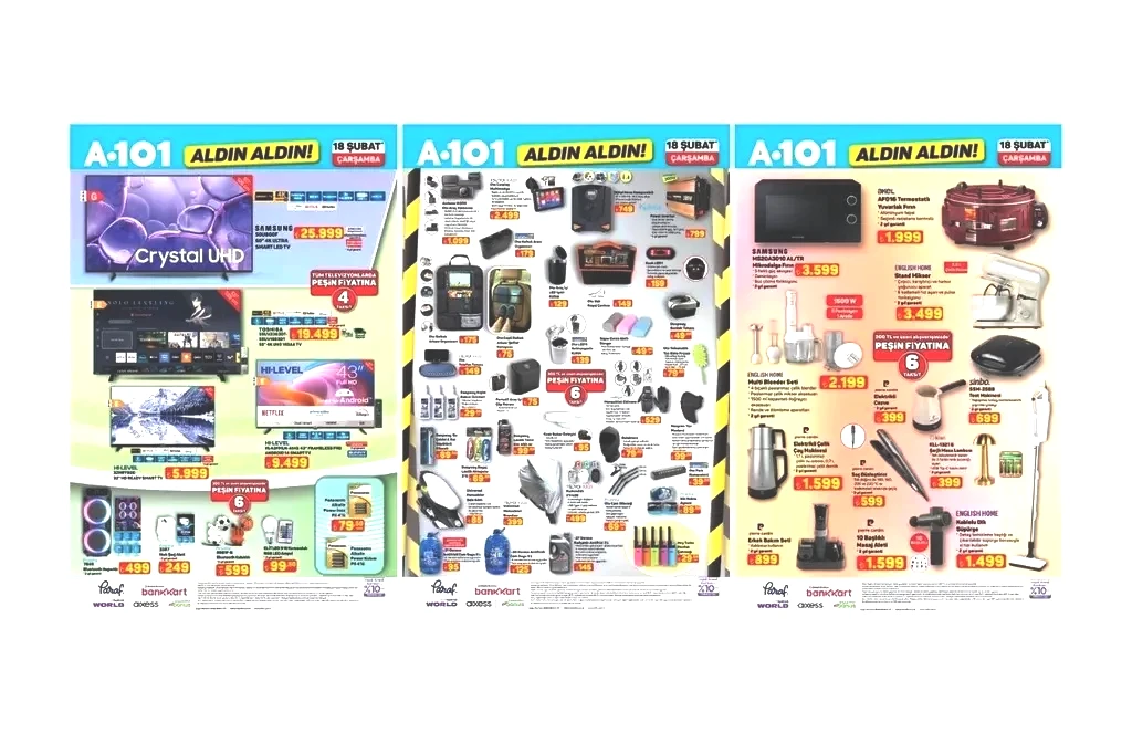 A101'in bu hafta Perşembe günü sunacağı çeşitler neler? İşte 18 Şubat 2026 tarihli A101 "Aldın Aldın" kataloğunda yer alan tüm indirimli ürünlerin ayrıntılı listesi: